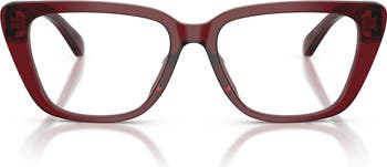 Italian-made optical glasses are subtly branded at the temples and fitted with replaceable nonprescription lenses.