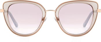 Subtle branding and angular cat-eye frames define lightweight metal sunnies fitted with gradient lenses and adjustable nose pads for secure wear.