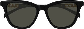 Golden logos boldly illuminate the temples of sleek cat-eye sunglasses made in Japan and shaped from recycled acetate.