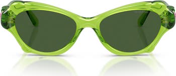 Full-cut crystal hinges bring signature Swarovski sparkle to these alluring cat-eye sunglasses suitable for everyday wear.