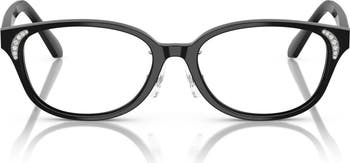 A slender oval shape distinguishes these everyday optical glasses updated with glimmering pavé crystals at each temple.