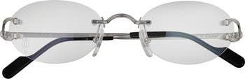 A signature detail defines the temples of frameless glasses you can wear as a fashion accessory or fill with lenses from your personal prescription.