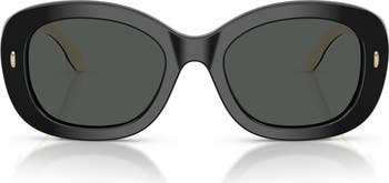 Signature logos mark the temples of Italian-made sunglasses featuring a retro oval profile and lightweight acetate frames.