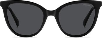 Polarized lenses mean color-true clarity on versatile cat-eye sunglasses marked with laser-etched branding at the temples.