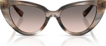 A golden typeface logo at the temples brings signature style to these retro cat-eye sunglasses fitted with full-coverage, polarized lenses that help reduce glare.