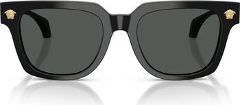 Medusa head logos illuminate the square frames on Italian-made sunglasses finished with signature lettering along the temples.