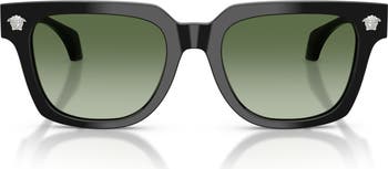 Medusa head logos illuminate the square frames on Italian-made sunglasses finished with signature lettering along the temples.