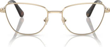 Exclusive Millennia octagonal crystals define the temples of these glamorous optical glasses made in Italy from polished metal in a classic cat-eye silhouette.