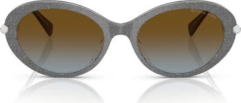 Denim-inspired acetate frames and slim metal temples add textural interplay to Italian-made sunglasses fitted with gradient lenses and shaped in an oval profile.