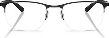 Subtle logos add a signature flourish to the temples of semi-rimless glasses shaped in an irregular silhouette and featuring adjustable nose pads for secure wear.