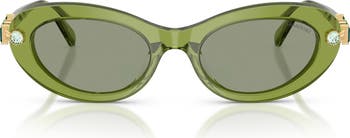 Gleaming crystals bring glamourous color to the slim temples of these sleek oval sunglasses fitted with tinted UV-protective lenses.