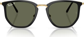 Golden logos complement the temples of irregular sunnies fitted with glare-reducing polarized lenses.