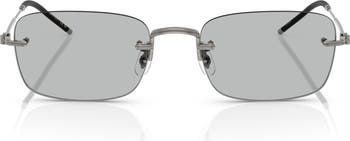 A slim rectangular profile and titanium temples define Italian-made glasses fitted with adjustable nose pads for comfortable wear.