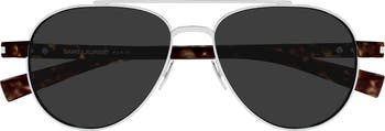 A double bridge and mixed-media design elevate retro-cool aviator sunglasses featuring adjustable nose pads for secure wear.