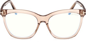 T-shaped motifs accent the butterfly silhouette of Italian-made glasses fitted with lenses that help filter out blue light from devices and computer screens.