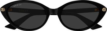 Interlocking-G logos accent the frames on slim cat-eye sunglasses made in France and finished with smoky lenses.