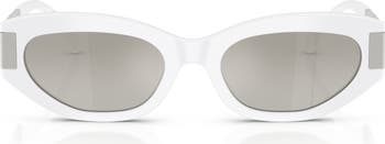 Greek key hardware gleams at the temples of stunning Italian-made sunglasses shaped in a slender cat-eye silhouette.