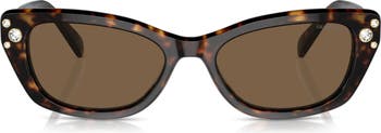 Precision-cut crystals emphasize the modern shape of these sunglasses fitted with dark, shading lenses.