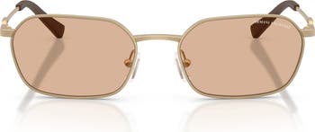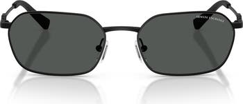 Logo hardware adds a signature flourish to the temples of Italian-made sunglasses featuring slim irregular frames and adjustable nose pads for secure wear.