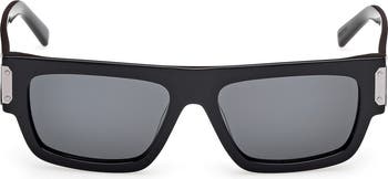 Bold rectangular frames bring a cool aesthetic to trend-savvy sunnies detailed with signature logo branding at the temples.