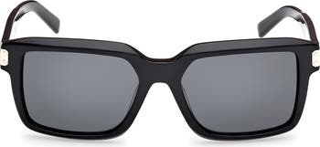 Classic squared frames bring a cool aesthetic to trend-savvy sunnies detailed with signature logo branding at the temples.