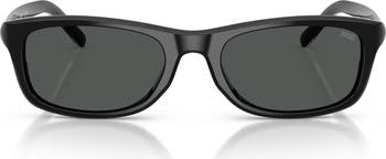 Glinting logo accents add a signature flourish to the temples of Italian-made sunglasses shaped in a slim rectangular profile.