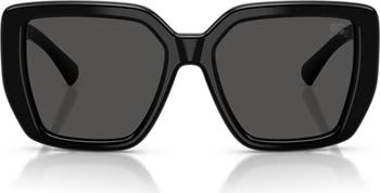 Angular frames bring a smooth, sculpted look to these Italian-made sunglasses fitted with distinctive logos at the temples.