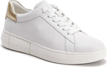A streamlined silhouette defines a timeless low-profile sneaker with a padded counter and a logo-stamped bumper sole.