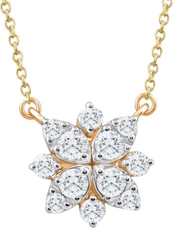 This women's pendant features 14 round brilliant cut lab grown diamond. All diamonds are prong set in solid 10k yellow gold. An 18" 10k yellow gold chain is included.
