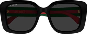 Interlocking-G logos and iconic stripes highlight the angular temples on bold butterfly sunglasses made in Japan and finished with smoky lenses.