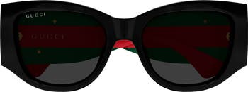 Interlocking-G logos and iconic stripes highlight the wide temples on bold cat-eye sunglasses made in Japan and finished with smoky lenses.