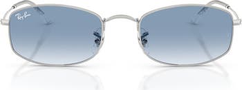 Angular metal frames create an irregular profile on slim sunglasses fitted with gradient lenses and adjustable nose pads.