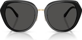 Tonal logos brand the temples of wide-framed sunglasses fashioned with adjustable nose pads and tinted UV-protective lenses.