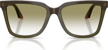 Subtle logo hardware adds a signature flourish to the temples of Italian-made sunglasses featuring irregular frames and smoky lenses.