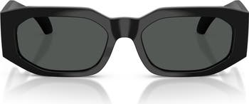 Signature logos at the wide temples authenticate these bold Italian-crafted sunglasses done in a striking geometric silhouette.