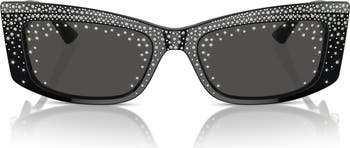 Lustrous crystals and signature logo hardware add a glamorous flourish to Italian-made sunglasses featuring an angular pillow silhouette and smoky lenses.