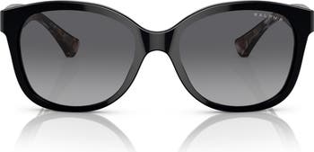 A polished acetate cat-eye silhouette brings timeless glamour to these prescription-compatible sunglasses. They're rendered in shiny black with polarized gradient grey lenses that reduce glare while offering 100% UV protection.