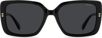 Jewel-encrusted hardware and subtle logos elevate the temples of bold rectangular sunglasses featuring glare-reducing polarized lenses.