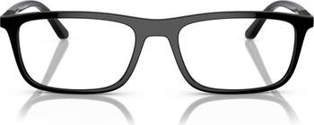 Signature logos mark the temples of Italian-made glasses featuring a classic rectangular profile perfect for everyday wear.