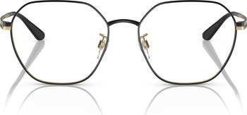 Logo-branded temples and a two-tone design elevate everyday glasses featuring angular round frames and adjustable nose pads for a customized fit.