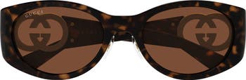 Interlocking-G logos make a bold statement at the temples of round sunglasses made in France and fitted with tinted lenses.