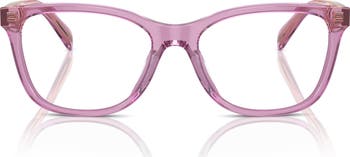 Monogram logo detailing stands out against the slender temples of lightweight acetate glasses shaped in a classic square profile.