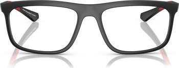 Italian-made optical glasses are subtly branded at the temples and fitted with replaceable nonprescription demo lenses.
