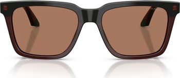 Subtle logo hardware adds a signature flourish to the temples of Italian-made sunglasses featuring classic square frames and smoky lenses.