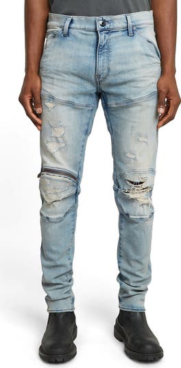 Threadbare holes, hasty repairs and a zippered pocket on one of the reinforced knees bring lots to talk about in well-faded jeans cut in a skinny, contour-hugging fit. Responsibly sourced cotton and plenty of stretch keep you moving comfortably day and night.