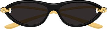 A clever knot design marks the temples of these sleek cat-eye sunglasses fitted with smoky-hued lenses that provide full-coverage UV-protection.