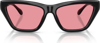Chic cat-eye sunglasses in glossy black pop with pink solid lenses for a playful, modern look, and the lenses deliver 100% UV protection.
