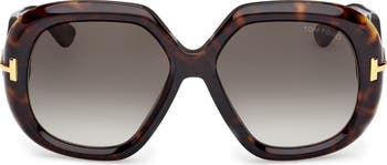 Beveled geometric frames shaped from lightweight acetate define these Italian-made sunglasses featuring signature T-bar inlays at the hinges and temples.