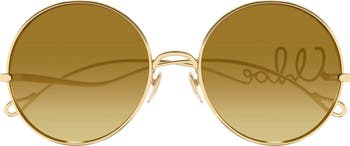 Promote a glam statement of style in these retro sunglasses designed with sleek round frames and fitted with gradient lenses that provide protection from UV rays.