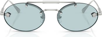 An oval, rimless design distinguishes these lightweight Italian-crafted sunglasses framed with tubular temples and punctuated with signature Medusa-head hardware.